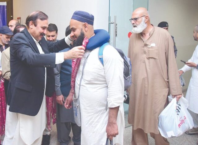 Federal Minister for Parliamentary Affairs Dr Tariq Fazal Chaudhry received the pilgrims at the airport.