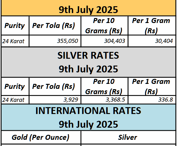 Gold Rates In Pakistan Today – July 9th, 2025