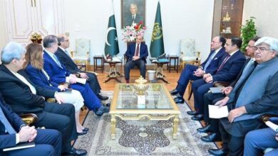 A delegation of International Monetary Fund (IMF) led by Jihad Azour calls on Prime Minister Shehbaz Sharif (centre) in Islamabad…