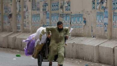 A labourer pulls a cart loaded with supplies to deliver to a nearby market in Karachi on May 24, 2023.…