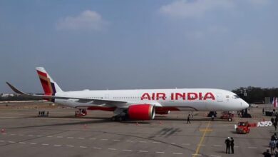 An Air India Airbus A350 aeroplane is displayed at Wings India 2024 aviation at Begumpet airport, Hyderabad, India, January 18,…