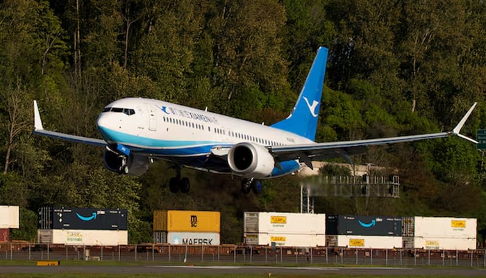 A Boeing 737 MAX 8, the second jet intended for use by a Chinese airline to be returned to its manufacturer, lands at Boeing Field, as trade tensions escalate over US tariffs with China, in Seattle, Washington, US April 22, 2025. — Reuters